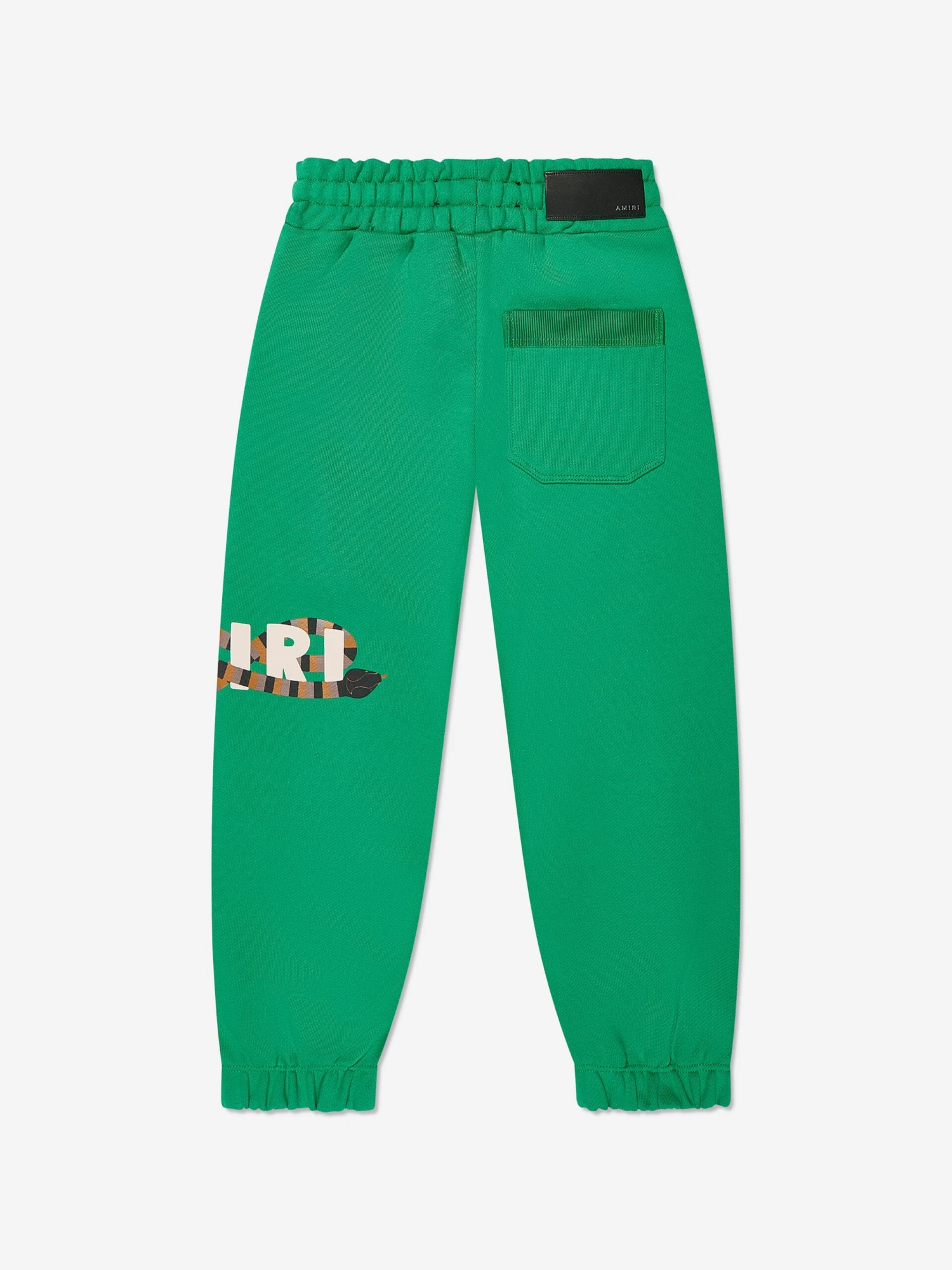 Amiri’s passion for Californian rock ‘n’ roll designs are embodied in these girls snake fern green joggers. Crafted in beautiful cotton jersey with ‘Amiri’ graffiti inspired print on the edge via an elasticated drawstring, pockets and trims.