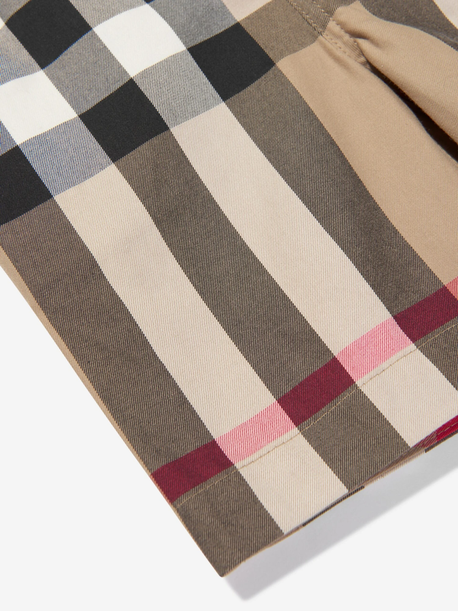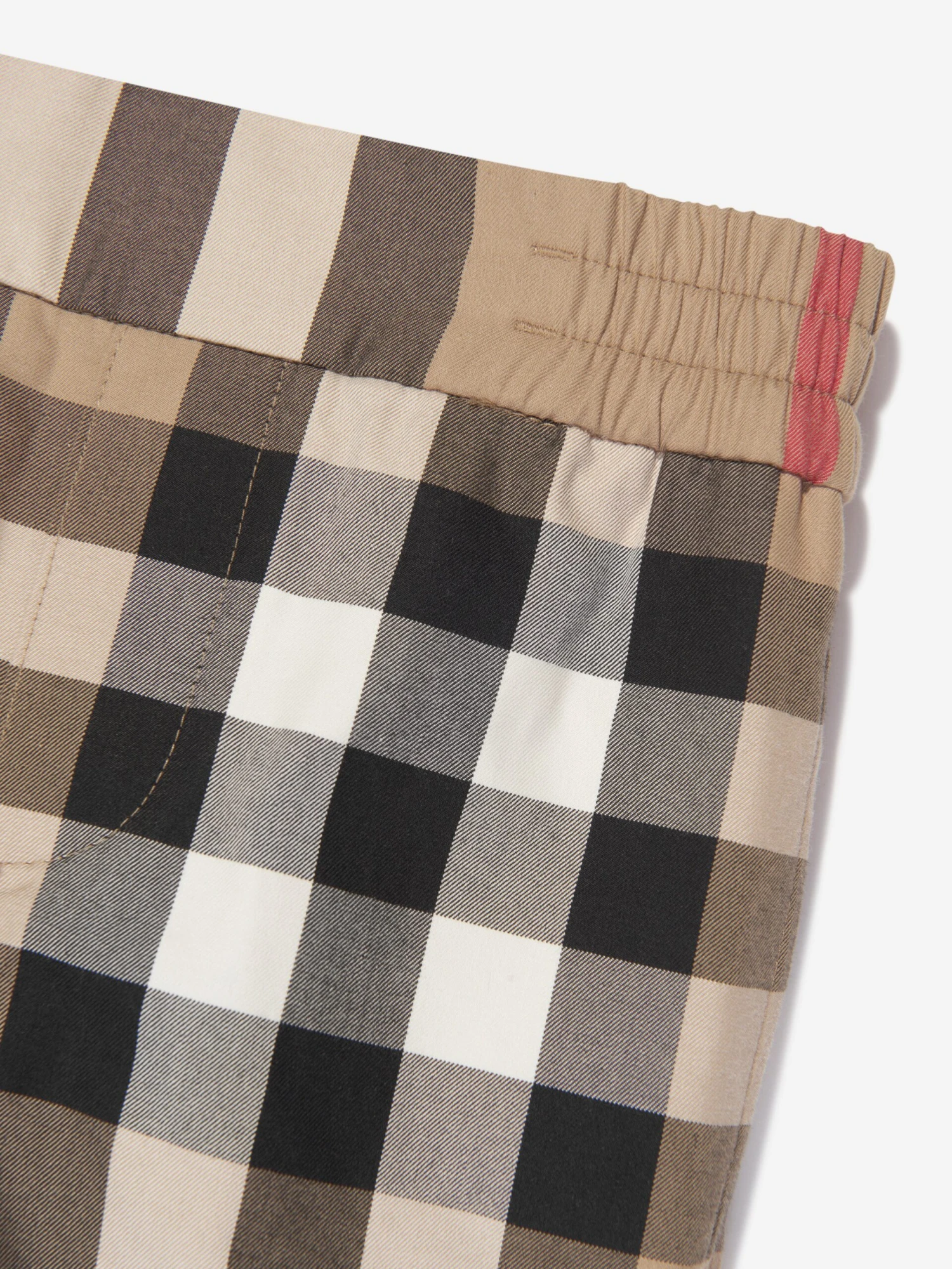 Burberry project tradition with a refined sustainability motive. These baby boys beige Halford Check shorts have been incorporated with fastidious precision and vintage charm. Made in refined cotton with the sophisticated House code stripe design and concealed hook-and-eye piece. The look is complete with side slip pockets and back welt pockets. He will emanate unparalleled confidence.