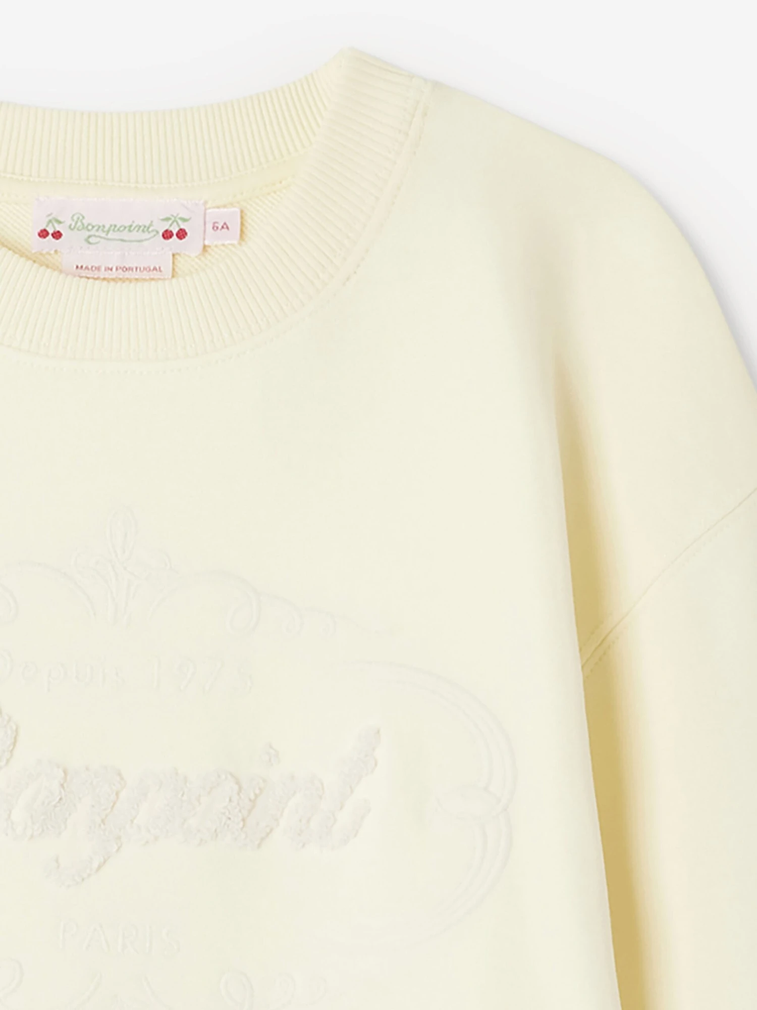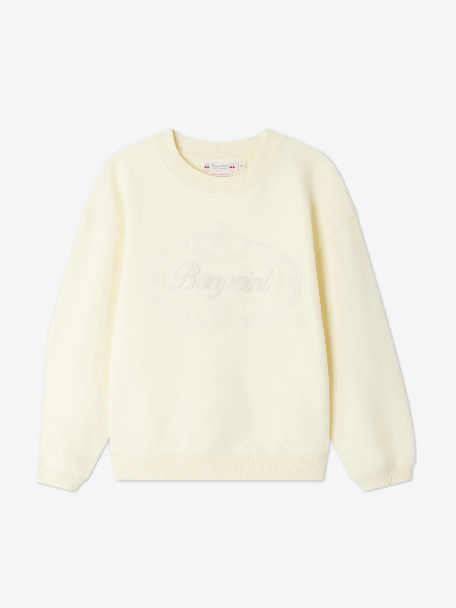 Bonpoint’s totally French aesthetics have been depicted with care and beautiful precision. This girls Tayla sweatshirt is a captivating summer addition. Crafted in organic cotton fleece via an oversize cut, crew neck, and long sleeves. It is decorated with a large Bonpoint Heritage logo embroidered at the front in bouclé-stitch.