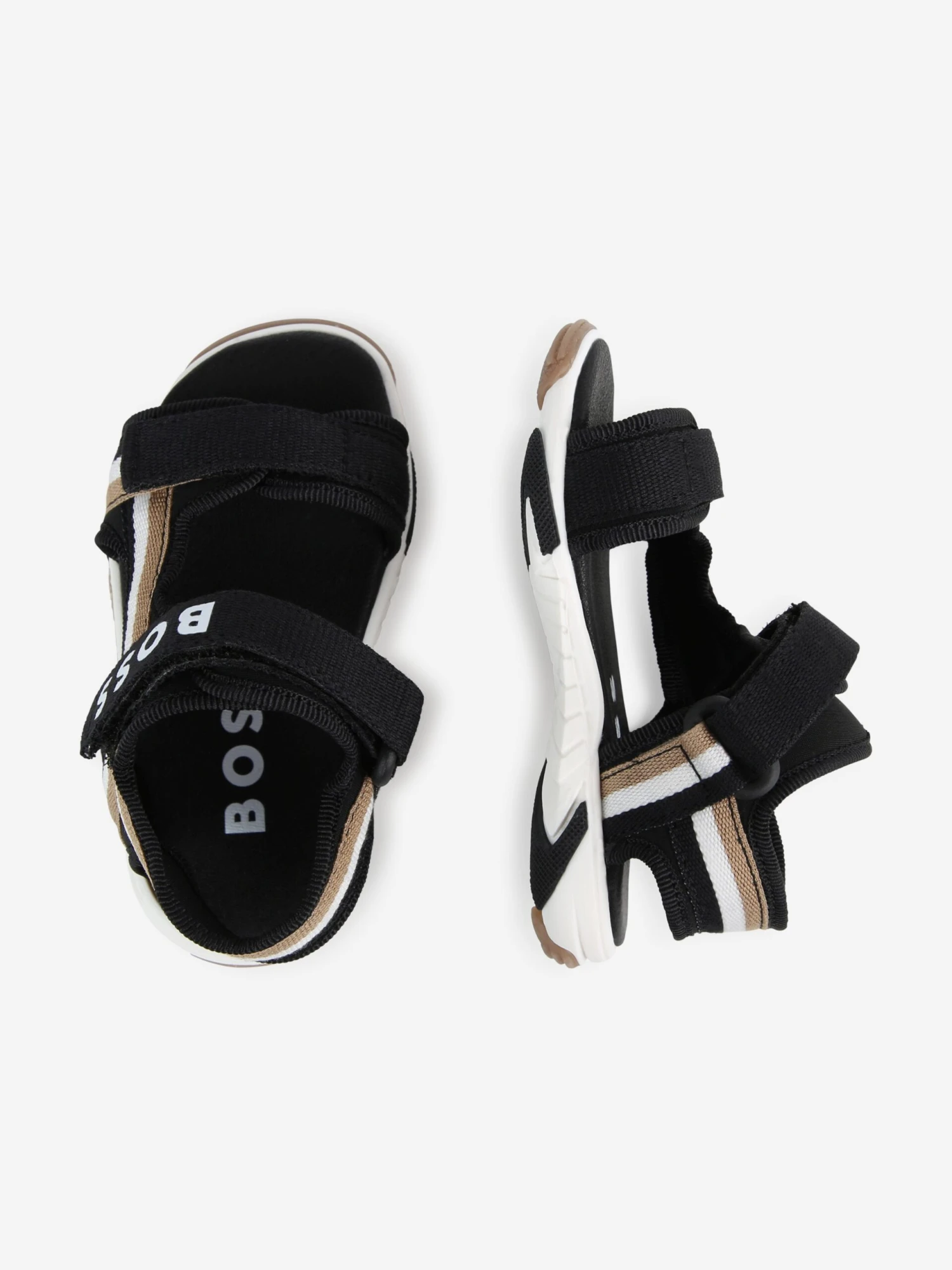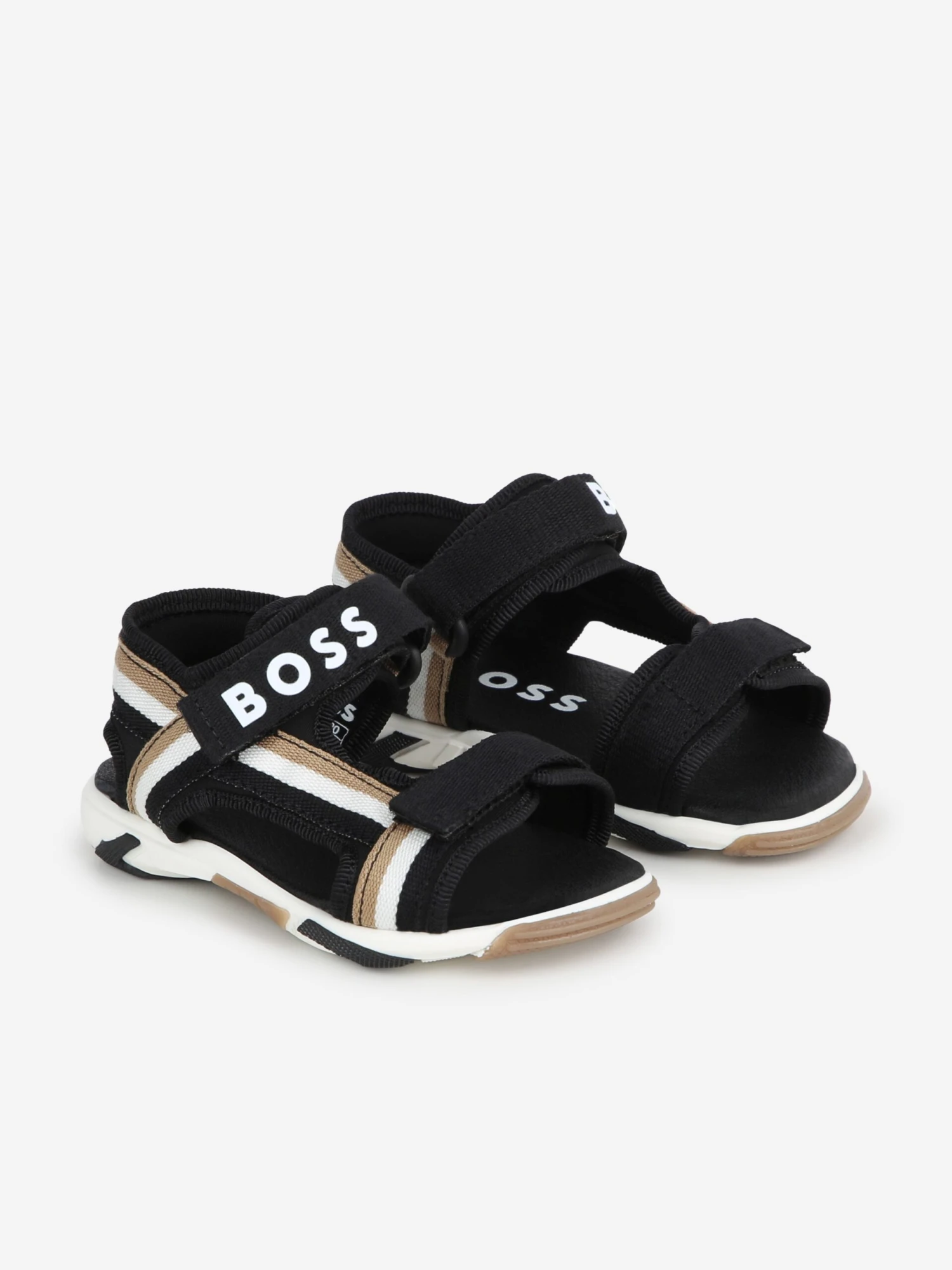 Introducing the Baby Boys Strappy Logo Sandals in Black by Boss. The ultimate addition to your boy’s wardrobe for Holiday elegance. The standout features include: