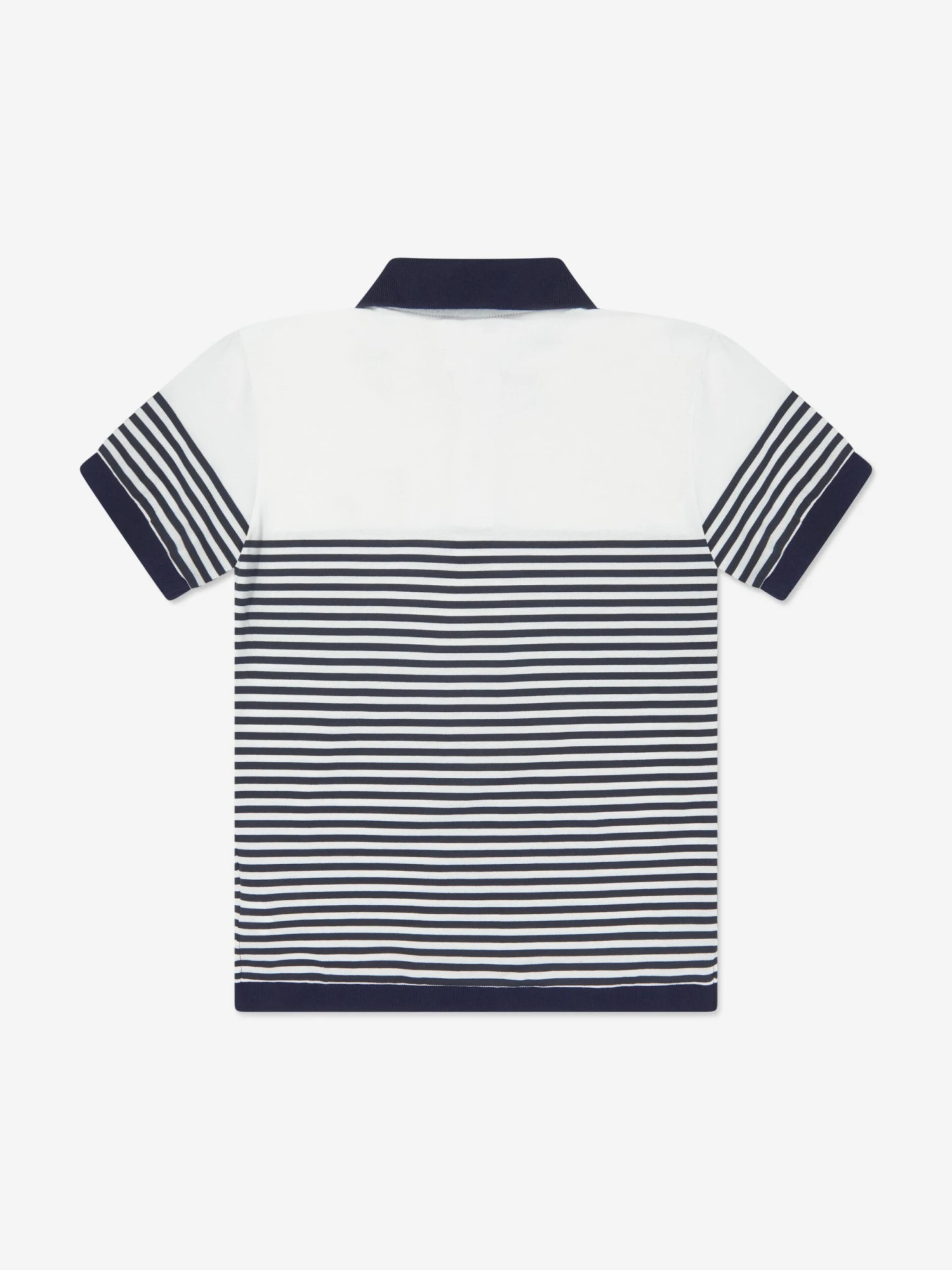 Dolce & Gabbana incorporate passion and enigmatic detailing into their exquisite aesthetics. This boys polo shirt encompasses unparalleled high quality and sleek, artistic integrity. As part of the “Marina” collection which plays around with the idea of sailors and lighthouse keepers. It is presented in cotton piqué via horizontal stripes, an embroidered DG logo patch, stretch knit polo collar and trim.