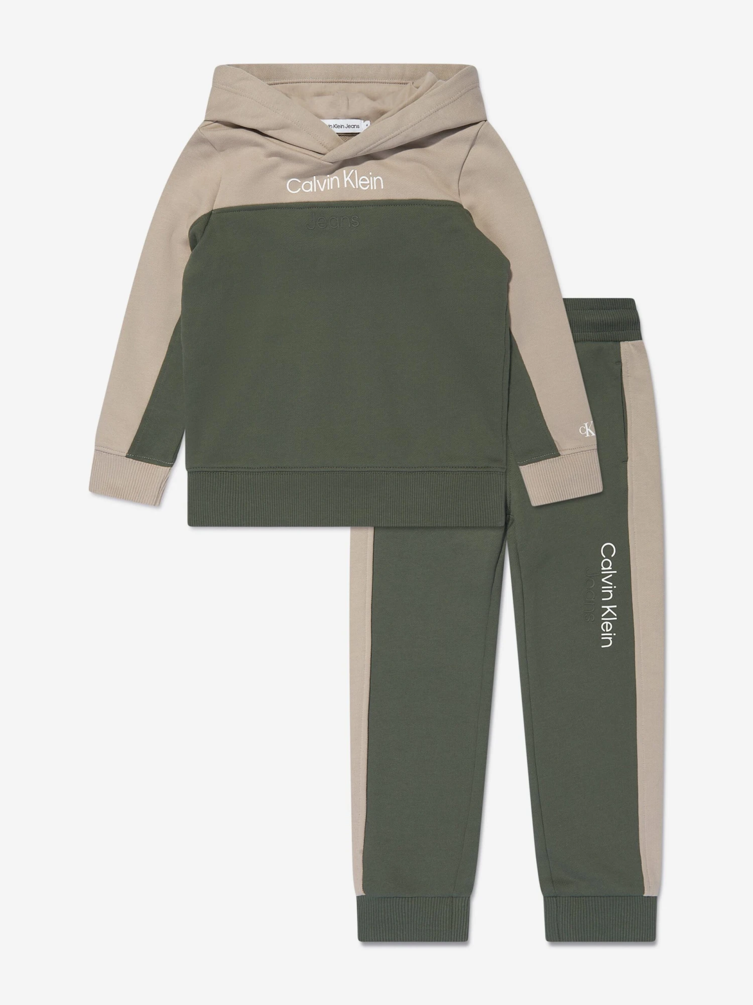 Introducing Calvin Klein Jeans’ Boys Colourblock Tracksuit in vibrant green – a distinctive addition to your boy’s wardrobe. Key features include: