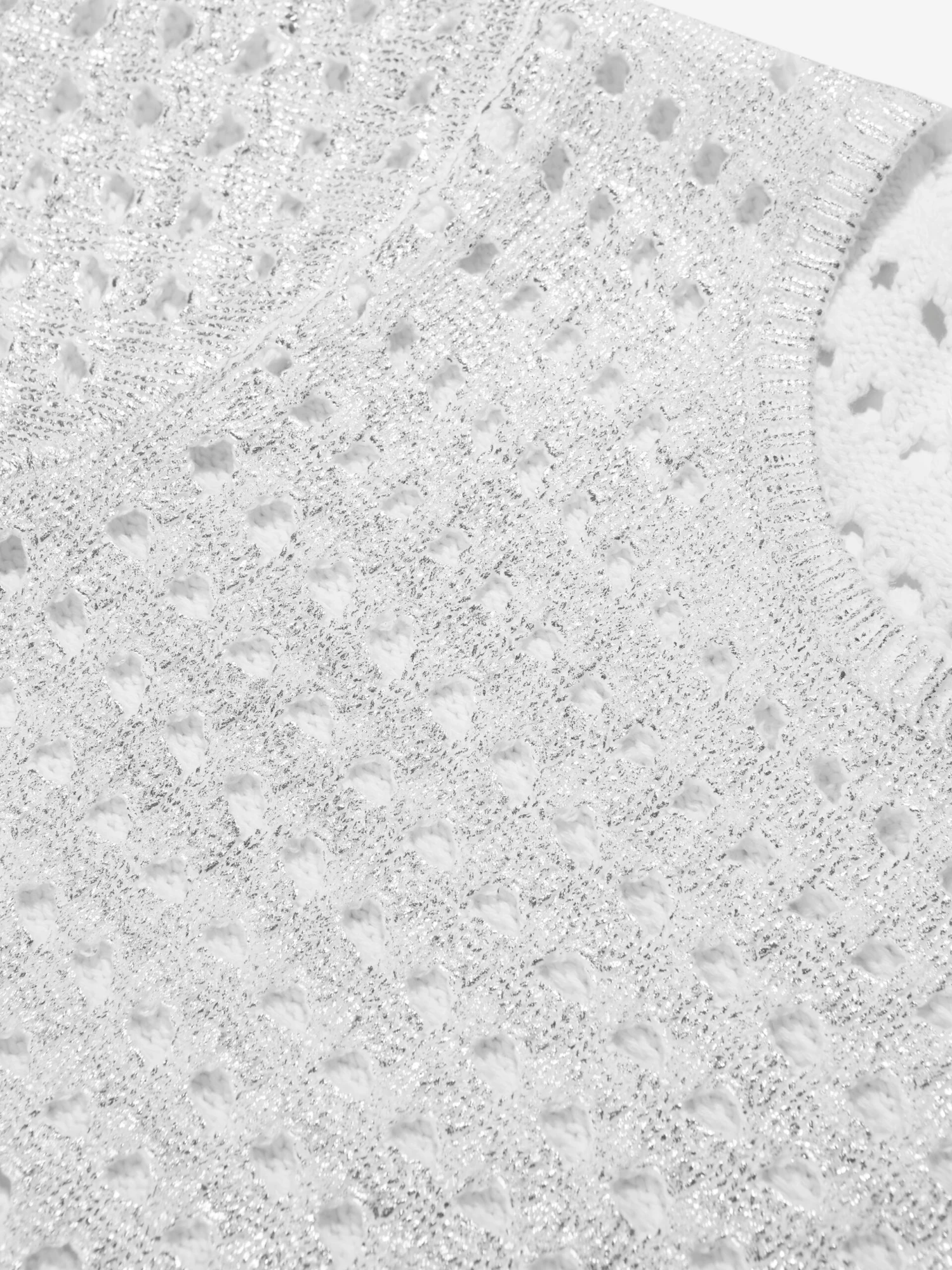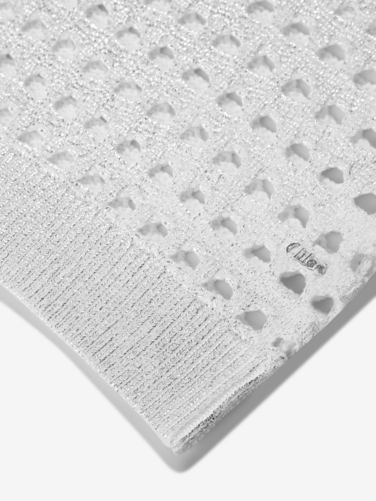 Parisian label Chloé reconceptualise Bohemian 70s wear into beautiful aesthetics to everlastingly adore. This girls short sleeve sweater is reflective of the French label’s exquisite construction and precision. Inspired by the adult collection, it is depicted in silver lamé via organic cotton and features a gold Chloe metal plate on the bottom garment. She will be obsessed.