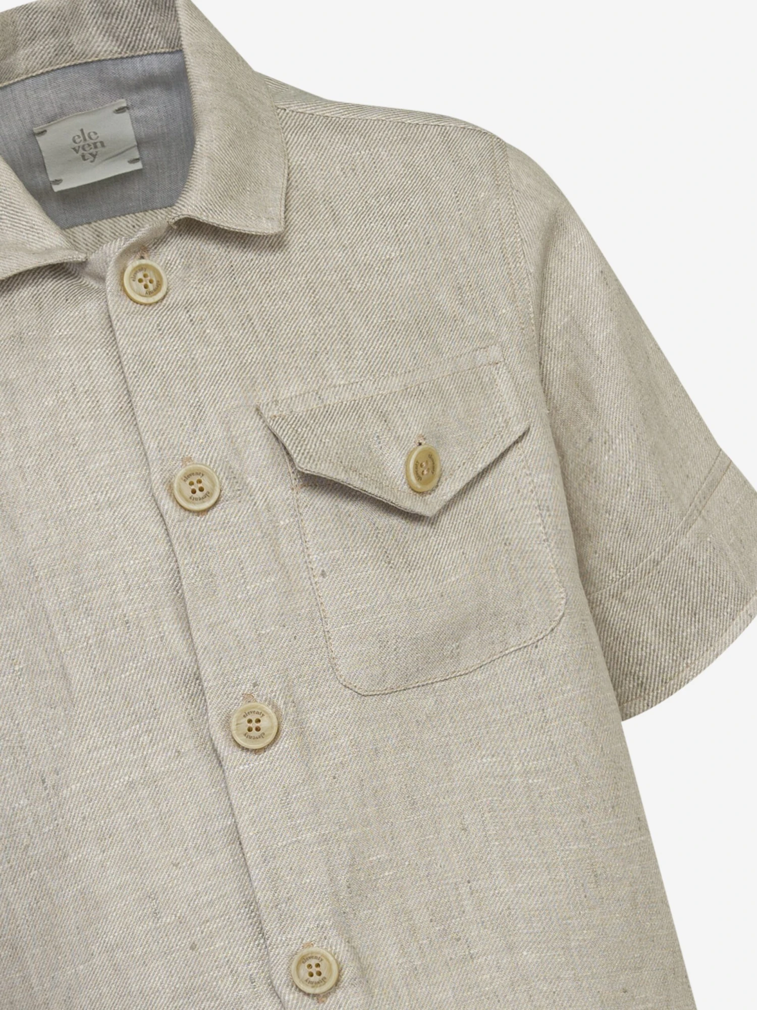 Eleventy reconceptualise utilitarian wear into beautifully crafted innovation both functional and lavish. This boys white shirt is depicted in beautiful linen, reflective of the Italian label’s passion for sleek, unparalleled fits. Crafted with a front pocket via embellished buttons, detailed stitching and an ‘eleventy’ patch.