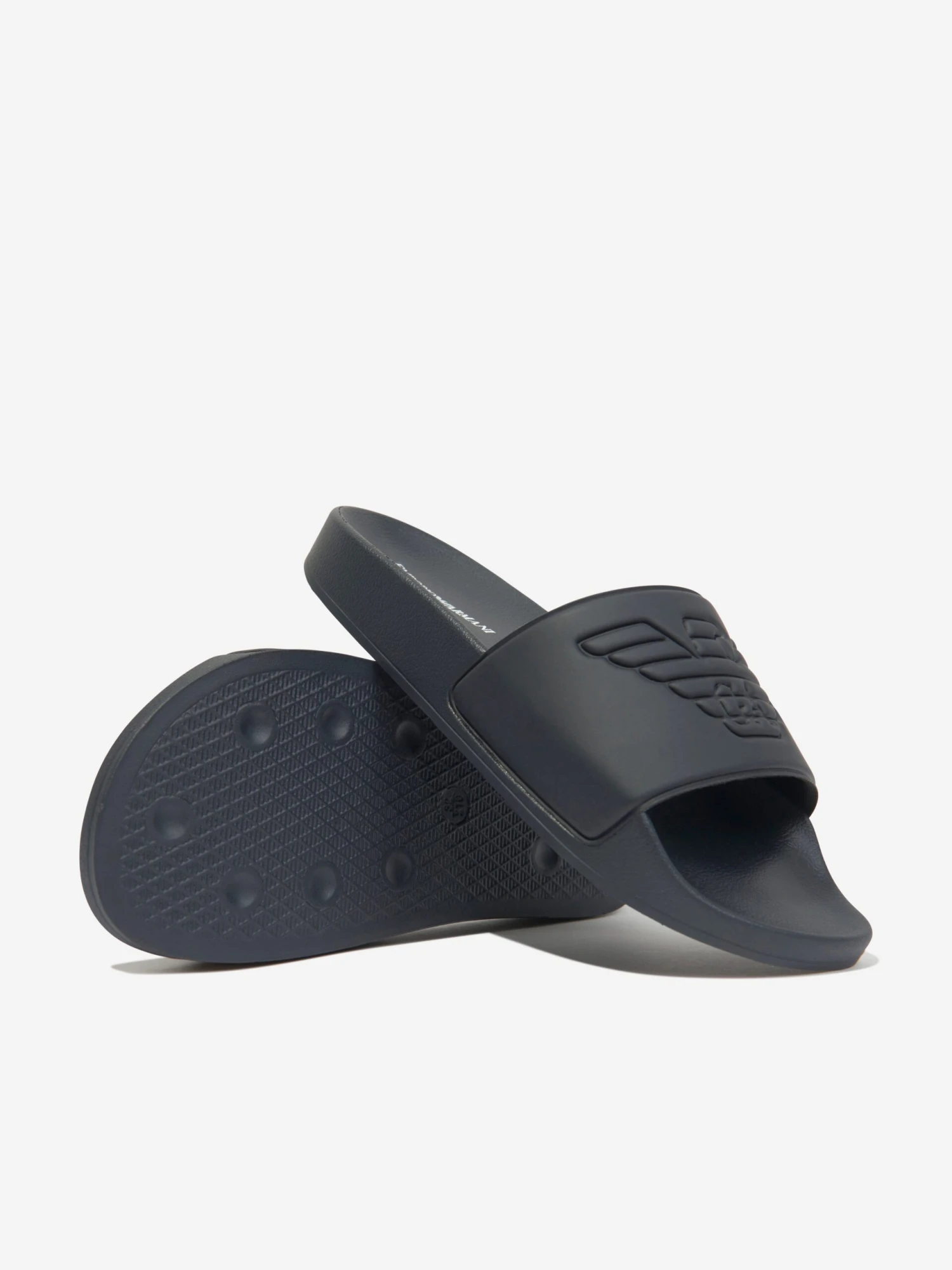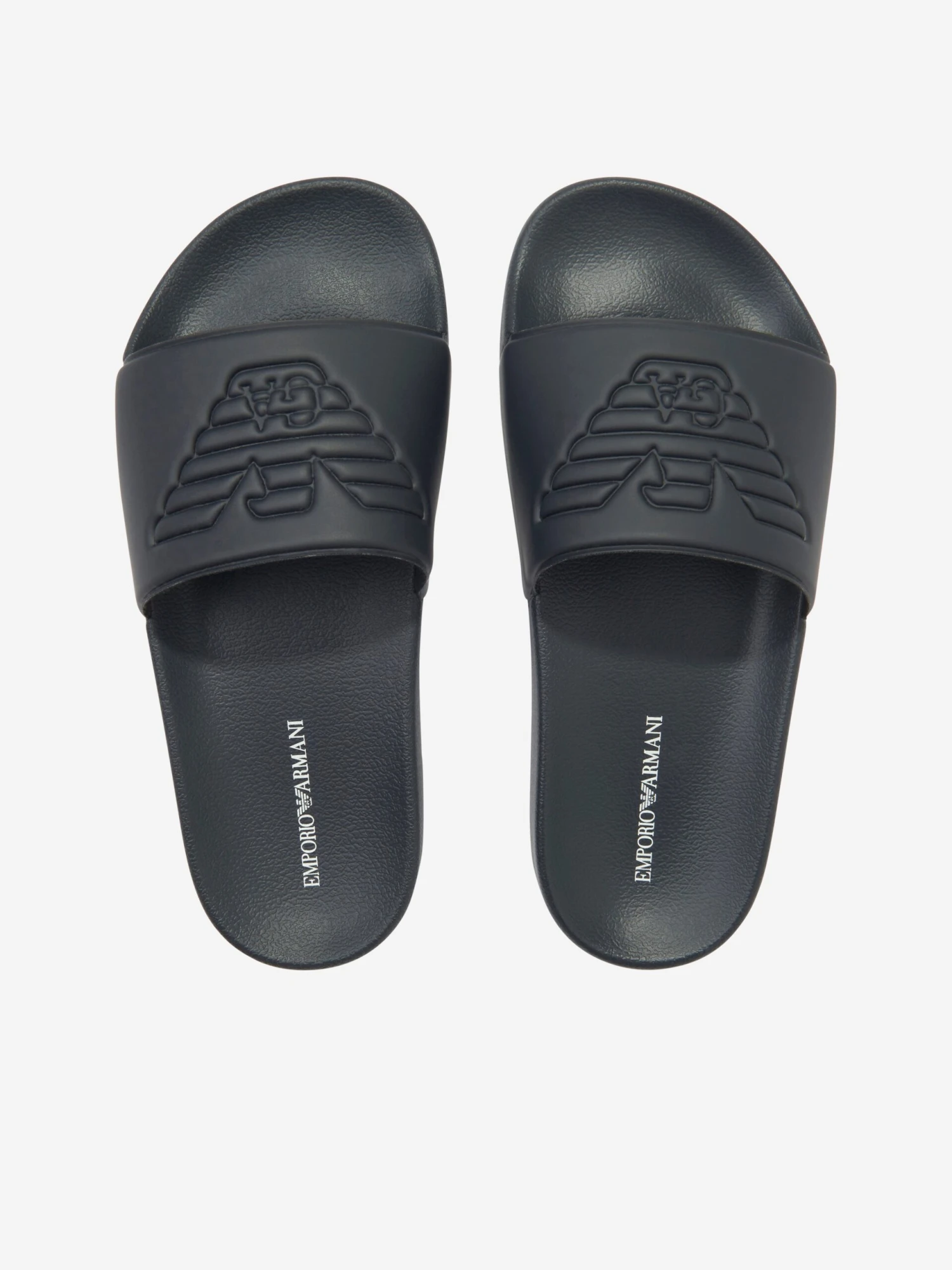 Elevate your young one’s style quotient with these Boys Logo Sliders in Navy from Emporio Armani. Order now for a stylish holiday season!