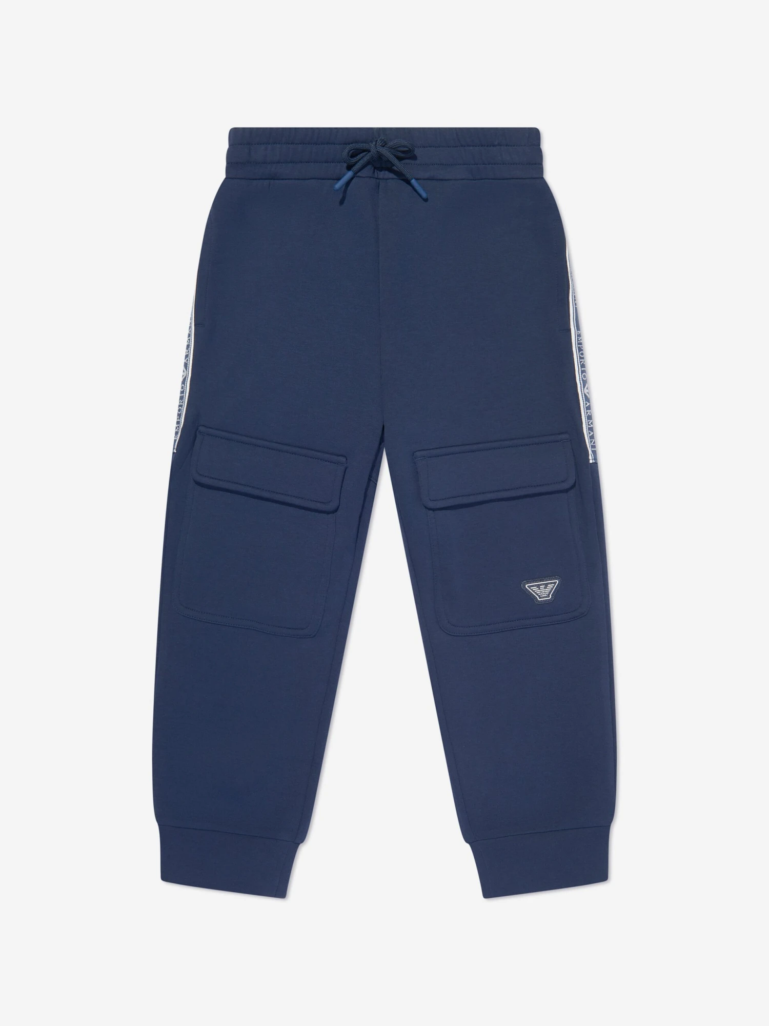Introducing Emporio Armani’s Boys Logo Tape Joggers in Navy Blue – an elegant addition to your boy’s collection. Here are the standout features:
