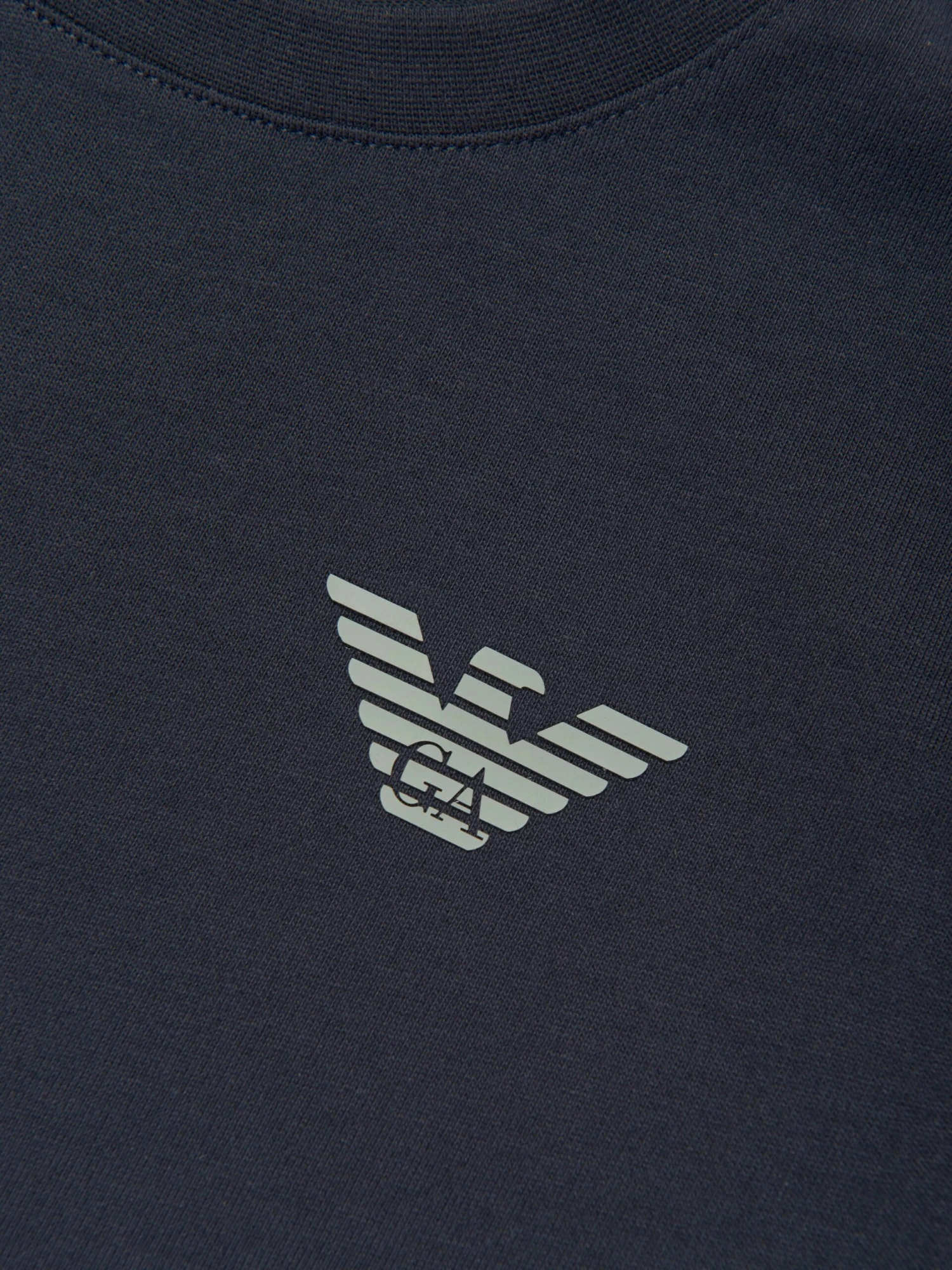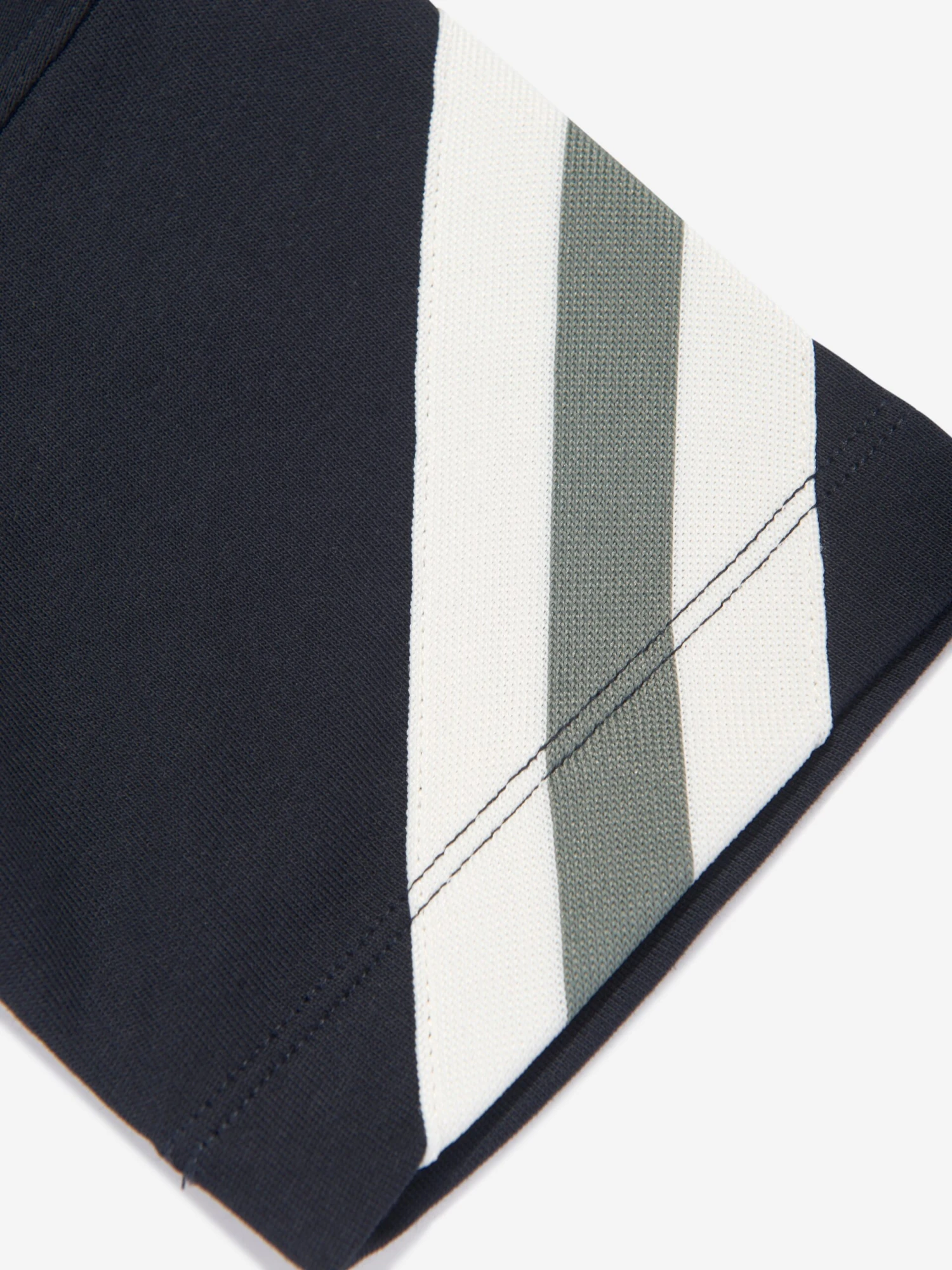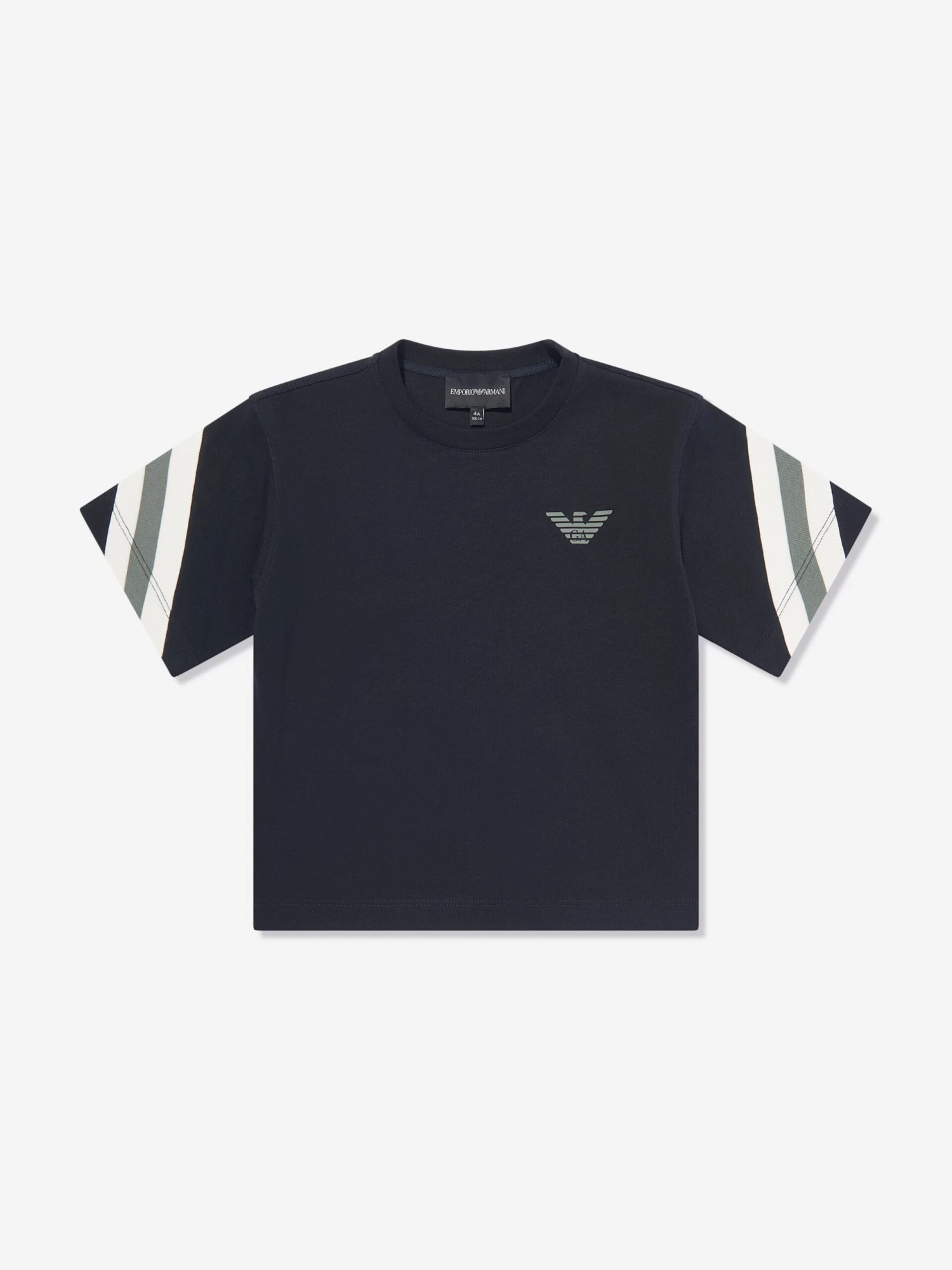 Introducing the Boys Striped Sleeve T-Shirt in Navy Blue by Emporio Armani, a wardrobe staple for your young man. Designed with sophisticated allure, this piece promises both luxury and comfort. The key features include: