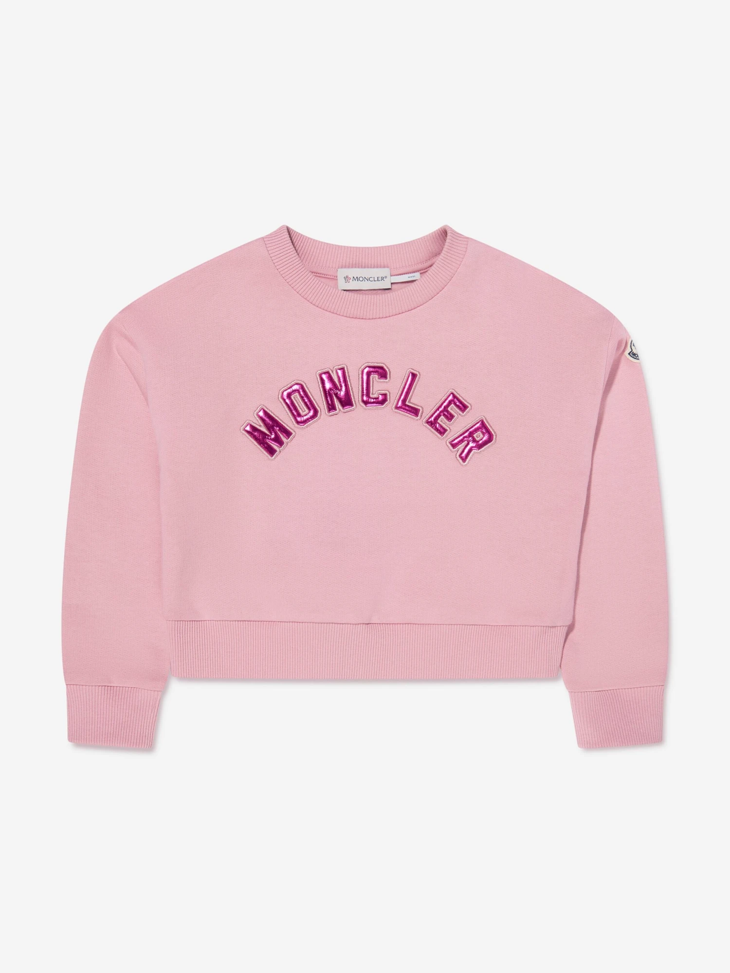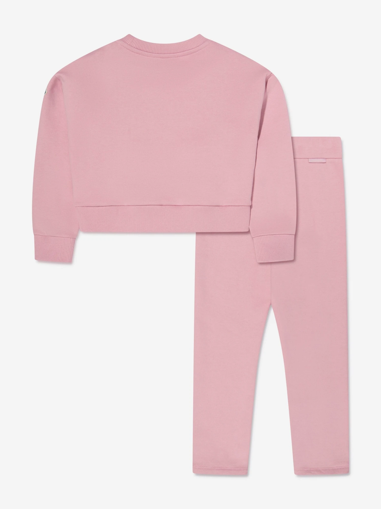 Athleisure with an Alpine twist, this kids pink tracksuit from Moncler brings a ski-spirit to a more relaxed fit. Crafted from a soft and comfy cotton fleece, the 2-piece set features a uncluttered design, with a large metallic fuchsia logo embroidered across the chest. The iconic monogram badge applique adorns the left sleeve, whilst a branded tab appears on the bottoms.