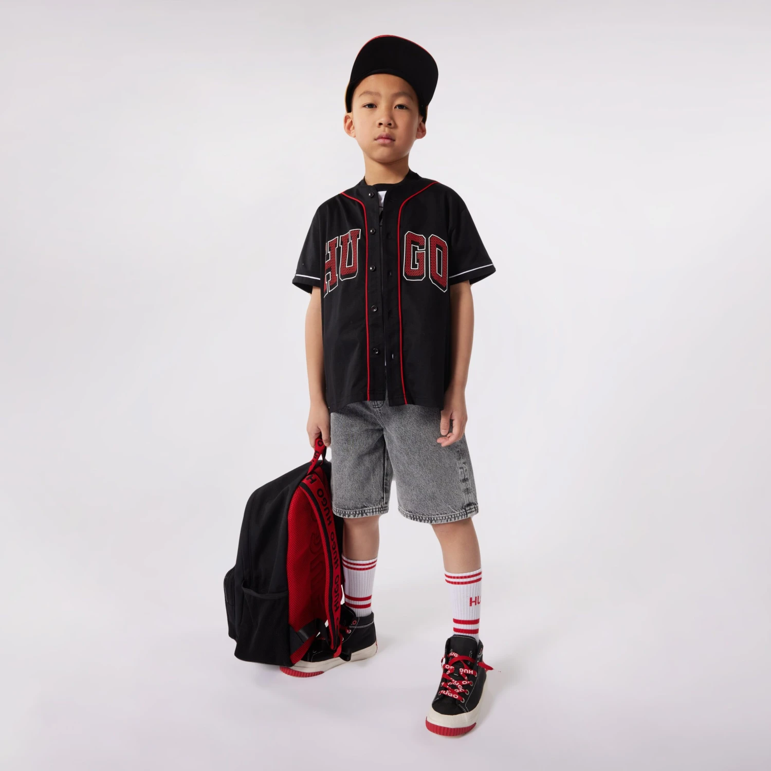 Unveiling the much-coveted Hugo’s Boys Jersey Baseball Shirt in striking Black colour, an integral addition to your boy’s apparel collection. Its versatility and stylish attributes make it the perfect go-to everyday wear.