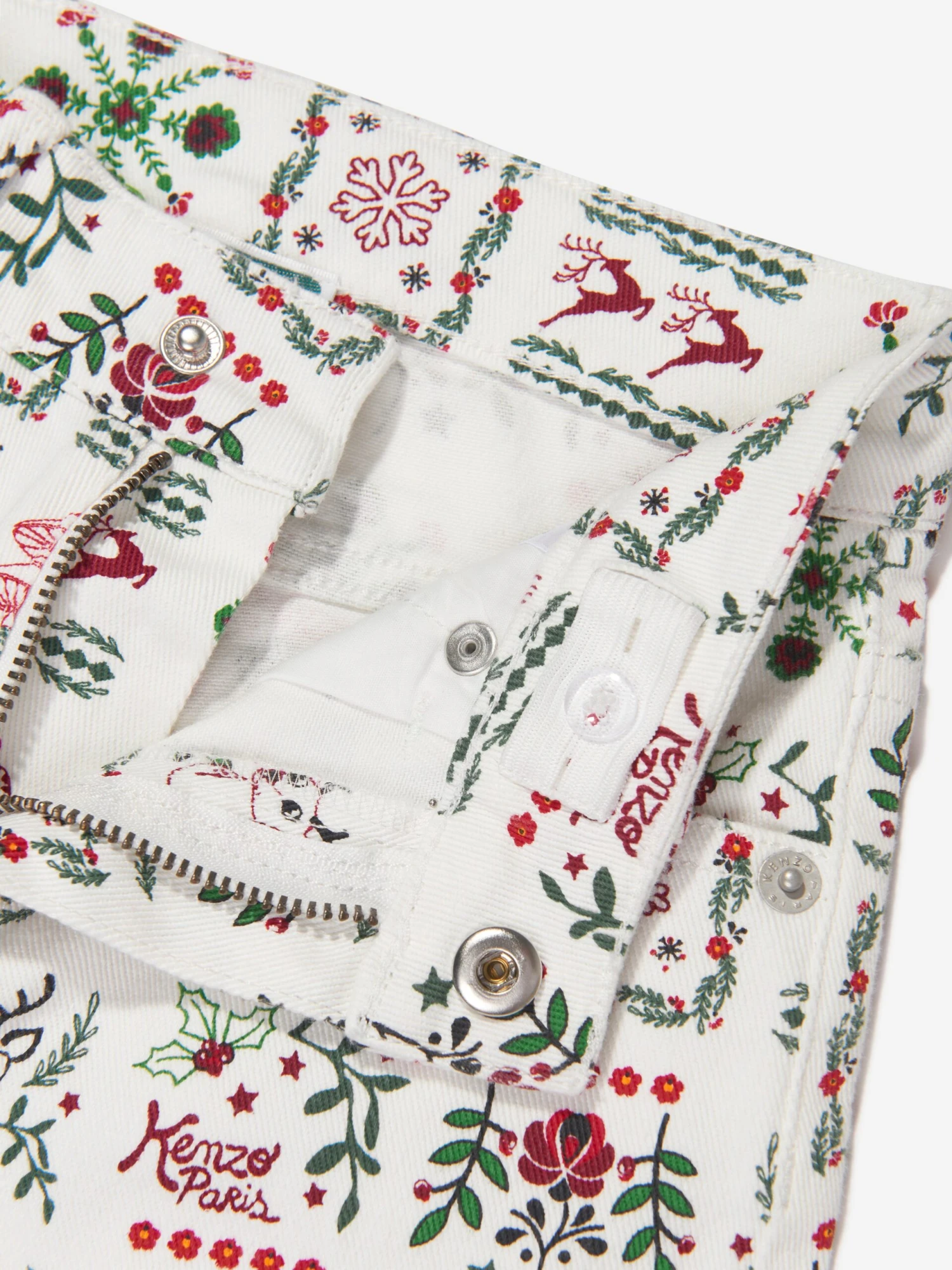 Introducing the Girls Seasonal Print Trousers in Ivory, a must-have wardrobe piece from Kenzo. These trousers encapsulate style and convenience, ideal for Christmas occasions.