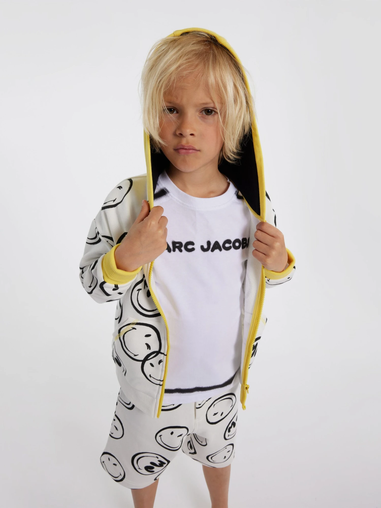 Marc Jacobs project enigmatic detailing and high quality construction into their forward-thinking aesthetics. This boys ivory hoodie captures the New York label’s unpredictable nature and passion for quirky, sophisticated statement pieces. As part of a collaboration with Smiley World, it features “SMILEY” bicolour all-over, contrasting stitching, a zip fastener and MARC JACOBS cornelly embroidery on the back.