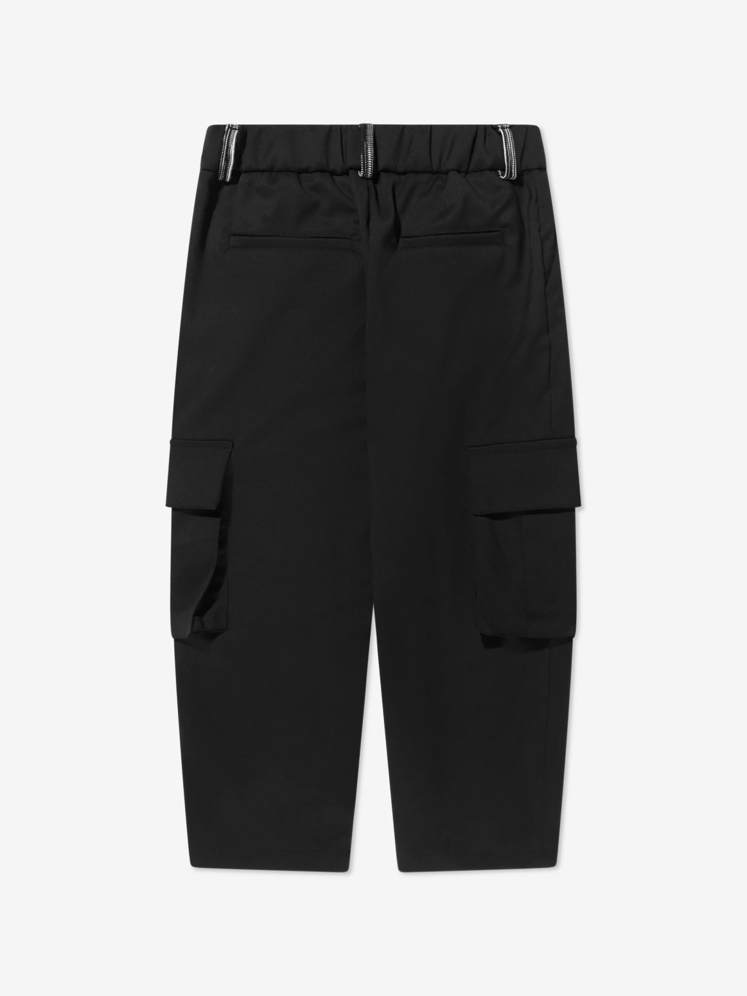 Formal dressing with Italian flair, these boys black combats from Missoni are a cut above the rest. The casual silhouette gets a formal makeover, crafted from a soft virgin wool and sporting contrast mono striped belt loops. A tonal embroidered logo sits on the left leg pocket. Pair with the matching shirt for a unique occasionwear look.