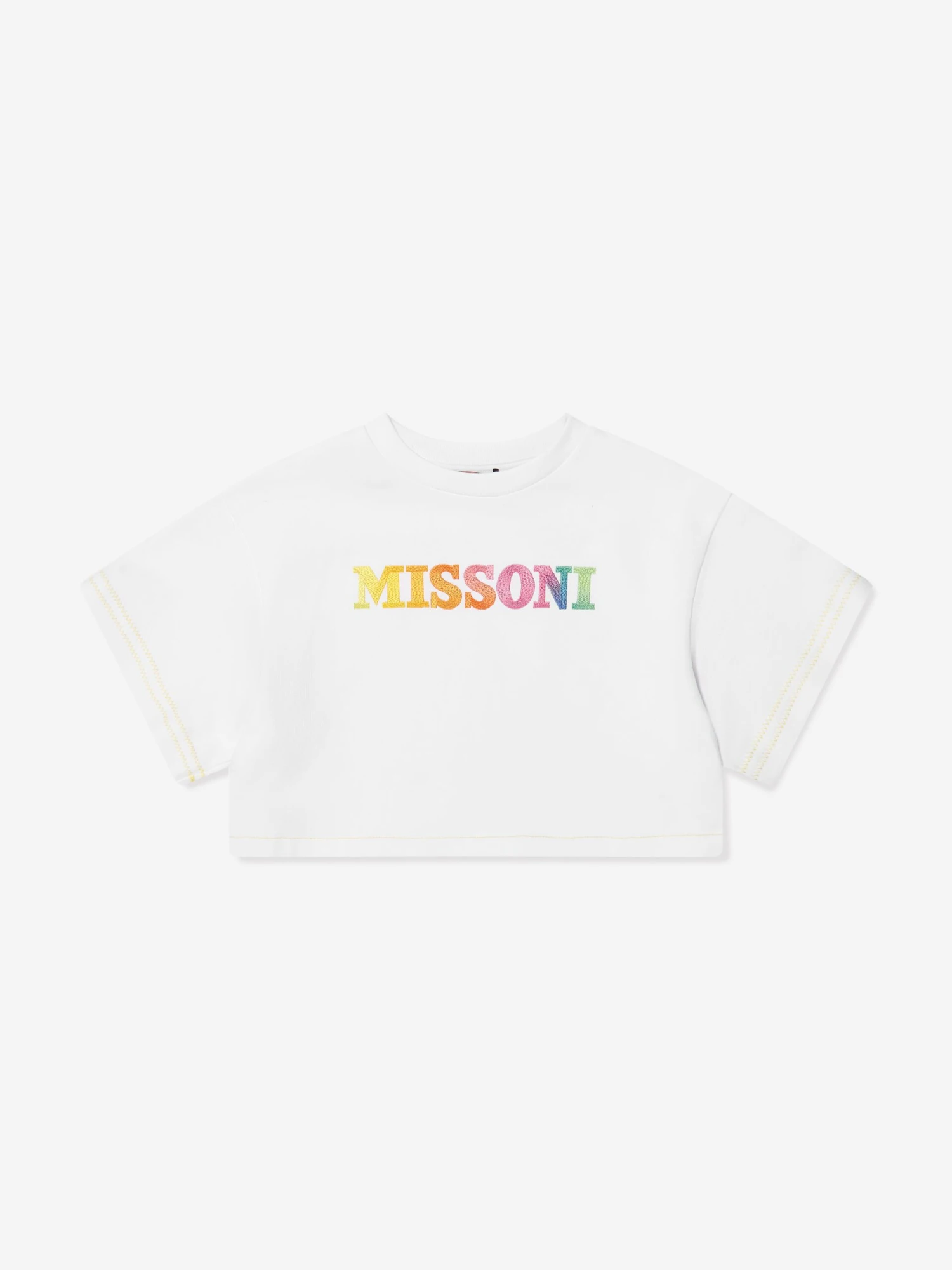 Introducing the Missoni Girls Cropped Logo Sweatshirt in pristine white, an exquisite addition to your girl’s fashion ensemble. Key features: