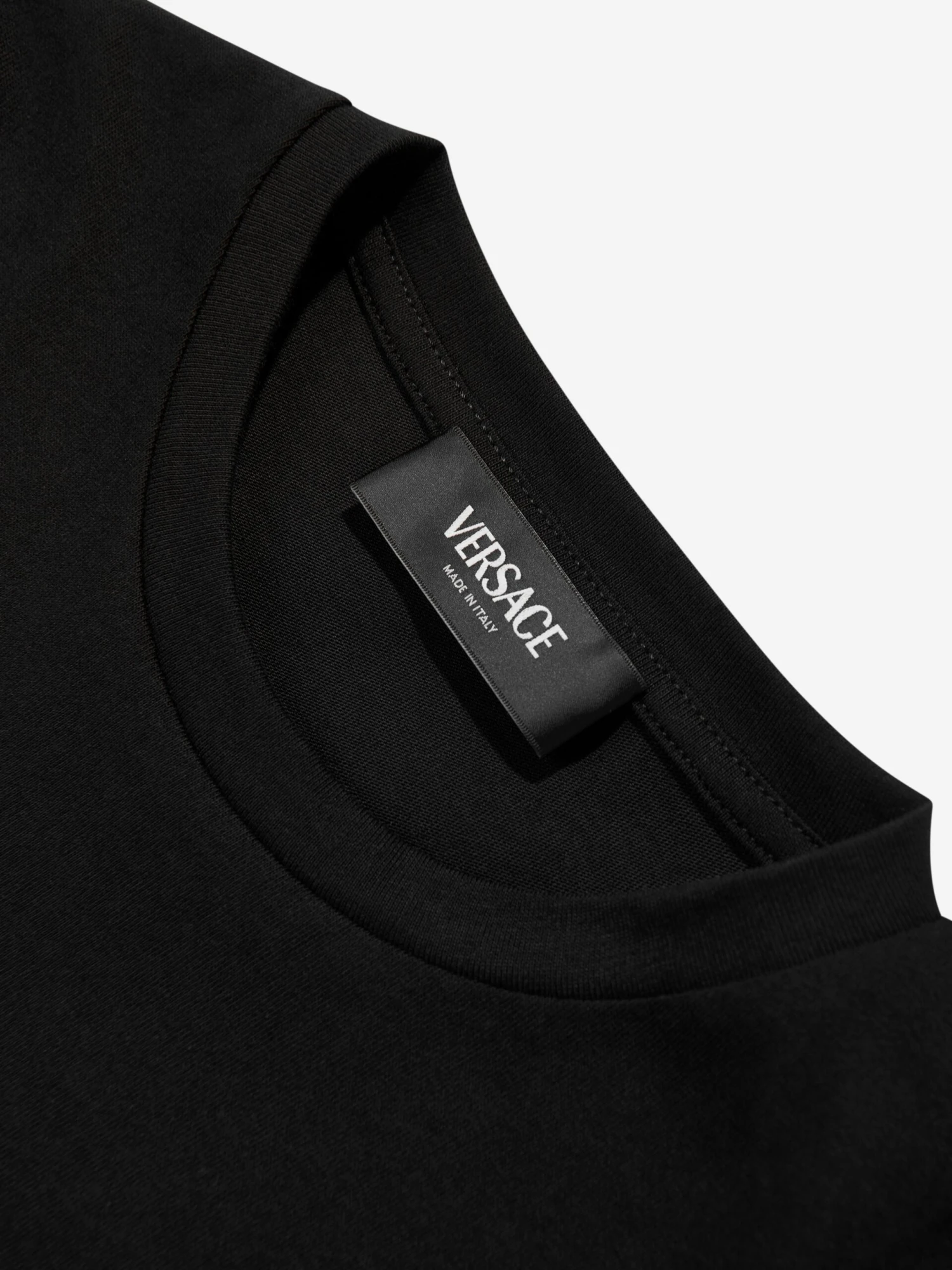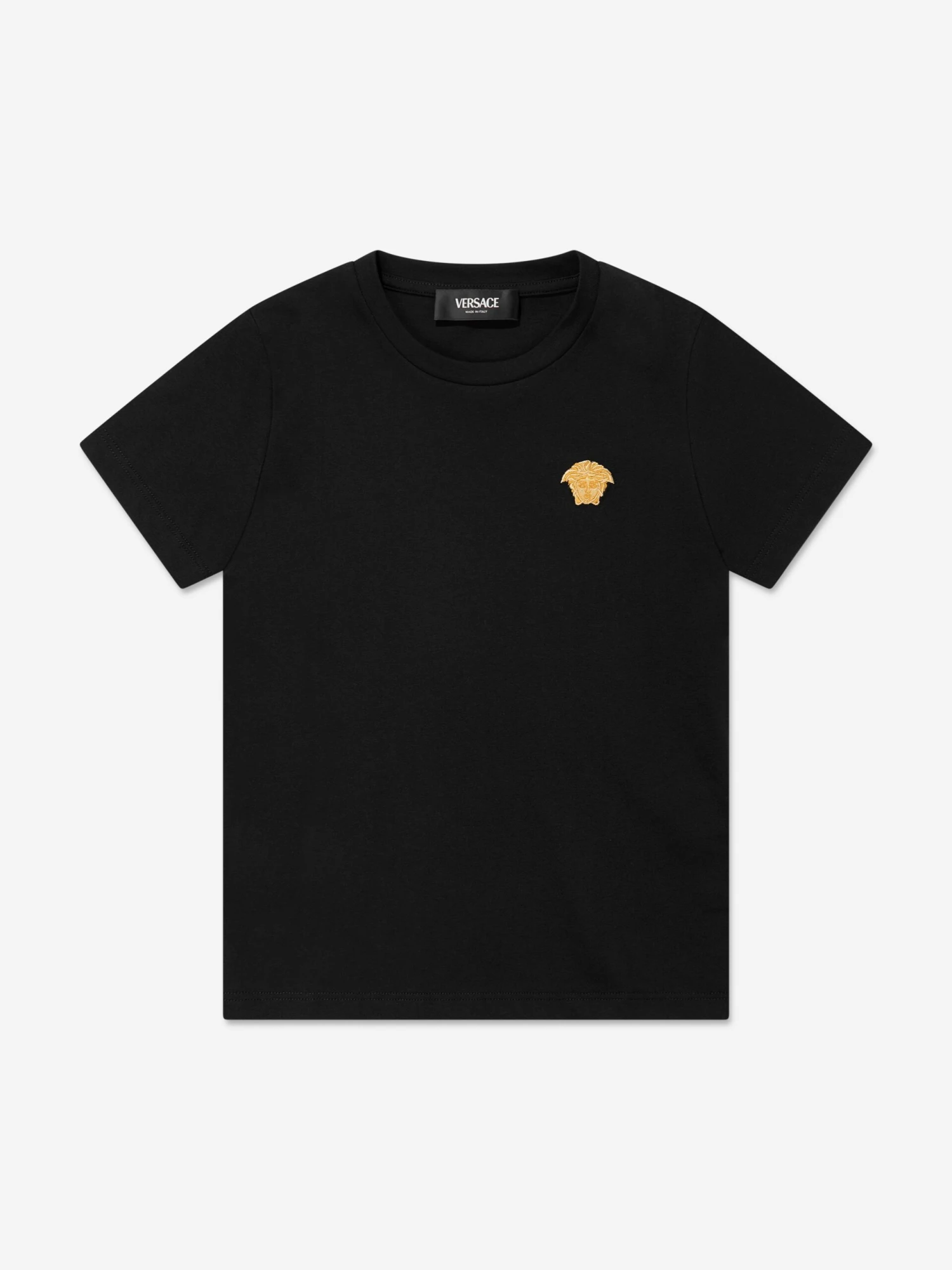 Versace encapsulate their daring aesthetics with a bold unapologetic attitude. This boys black and gold short sleeve t-shirt captures the Italian label’s passion for daring and unparalleled technology. Crafted in beautiful cotton jersey featuring an embroidered Medusa accent at the chest.