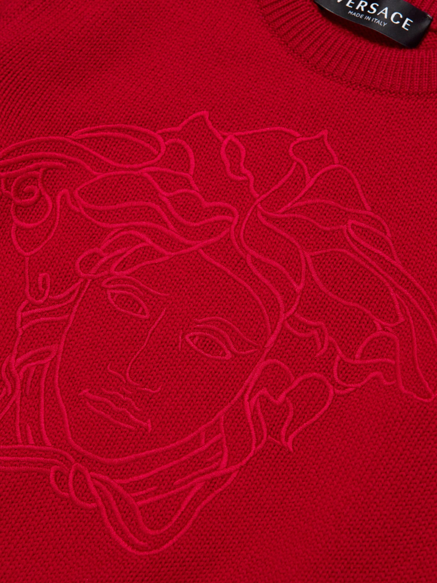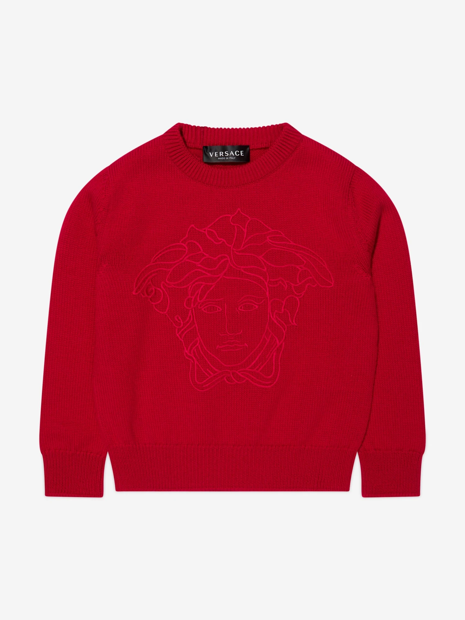 Luxury Italian label Versace use captivating Greek abstracts to create fun and playful aesthetics. This boys red sweatshirt embodies the Italian label’s vibrant craftsmanship and innovative outlook. Made in refined material, this long-sleeved soft knit jumper has been depicted with a Medusa embroidery at the front, a ribbed crewneck, hem and cuffs. A mythological statement both captivating and unique, he will be obsessed.