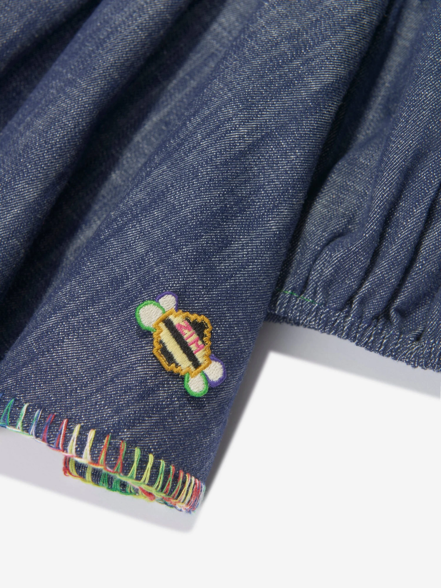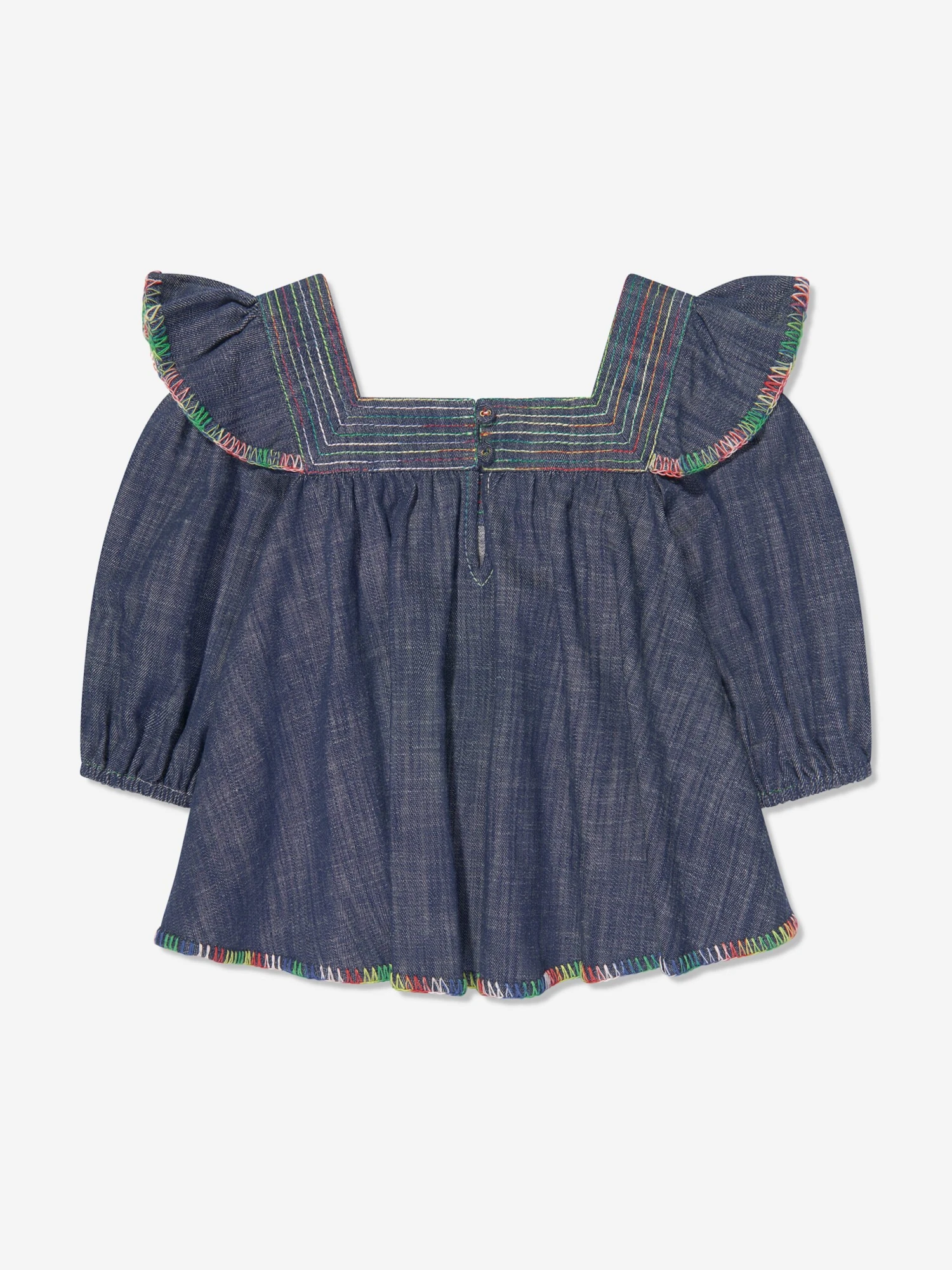 Australian label Zimmermann combine superior cutting with spellbinding silhouettes. This monsoon denim top is reflective of the brand’s commitment to originality and high quality detailing. Crafted with a multi-hued embroidered trim, it features a square collar, a flounced trim on the shoulders and puff sleeves. It is complete with a small embroidered bee logo above the hem. Matching shorts are also available.